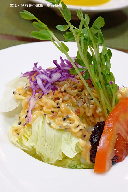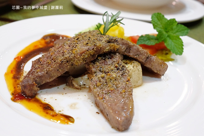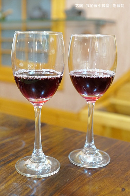 芯園是民宿、也是間餐廳,提供排餐、新加坡料理及一些特色套餐、下午茶,這些都是有對外開放,就算不是住宿客人,依舊能在這裡享用到美味的餐點,而在美食上桌前,會先送上二杯紅酒讓客人們開開胃。