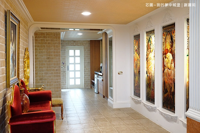 這個角度看過去,有奢華的水晶燈、美麗壁畫,真的就像置身在某個古堡的感覺,不用出國,免坐飛機,也能像在歐洲渡假。