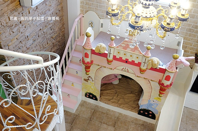 小孩專屬遊樂園,不敢相信吧!?連溜滑梯也打造得像個小城堡,上下都是能提供給小朋友休憩睡覺的床舖,真心覺得這邊美得有點好不真實耶!