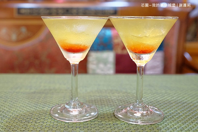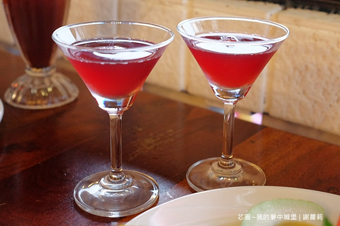 在芯園,晚上還提了免費雞尾酒的 special,只要有住宿的客人都可以來大廳享用呦!我們晚上用餐的時間比較晚,索性連調酒一塊喝了,再加上餐後飲料、甜點,肚子食物感覺都快飽到頭頂上了XD,就算是大食量的朋友,吃它們家的餐點也可以很滿足。