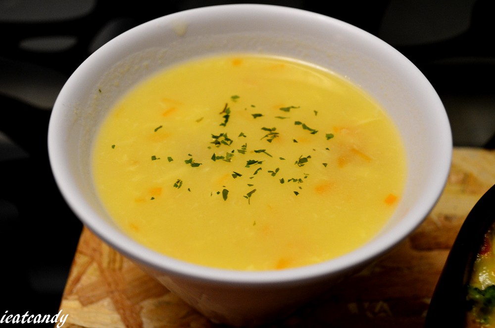 玉米濃湯也是店家每天製作而成,介於清湯跟濃湯中間,其中放的料也不少。