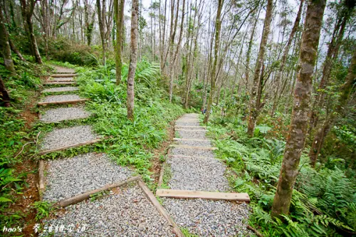 自然步道採自然工法建設,並以碎木屑鋪底,坡度平緩,步行走起來相當輕鬆。