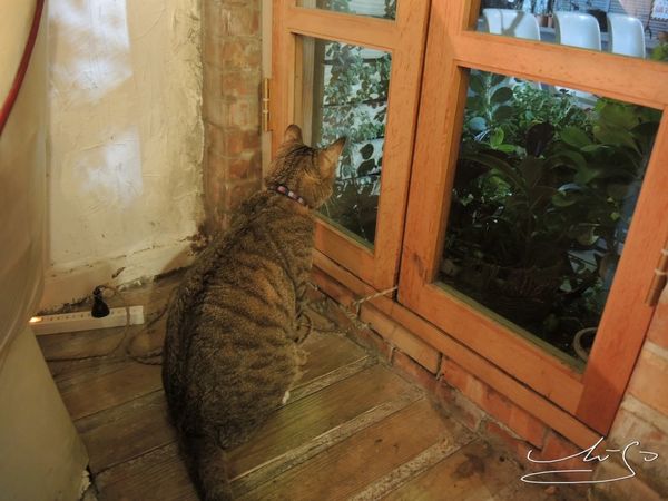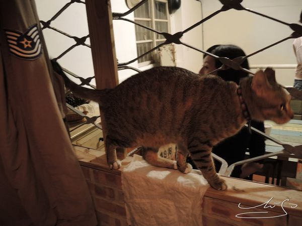 整個店內都已是搞喂的地盤 ~ 他完全不怕人 優遊自在的穿梭在店內