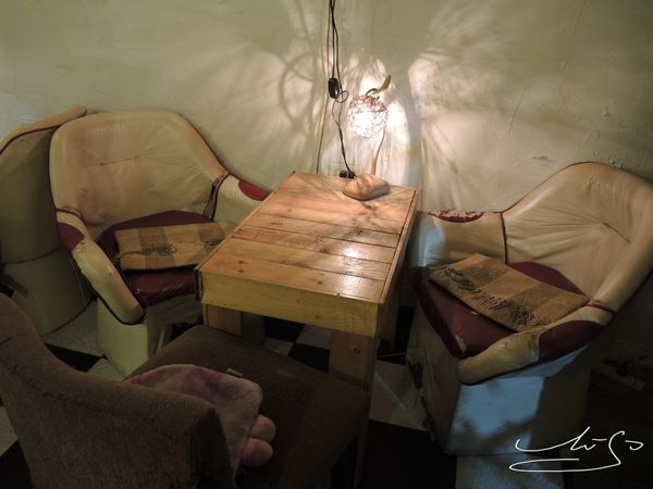 一樓座位是兩張小桌子及吧檯