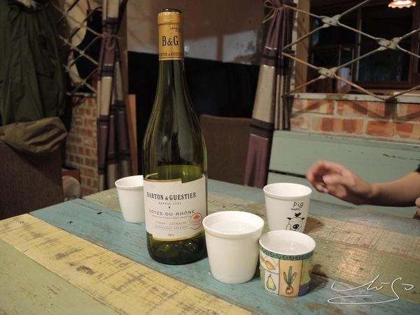 店內的水瓶是用酒瓶來代替