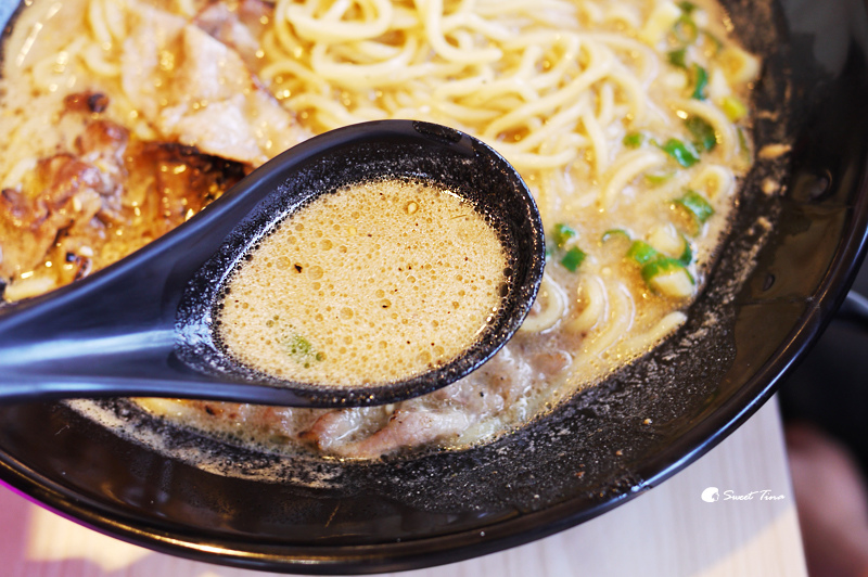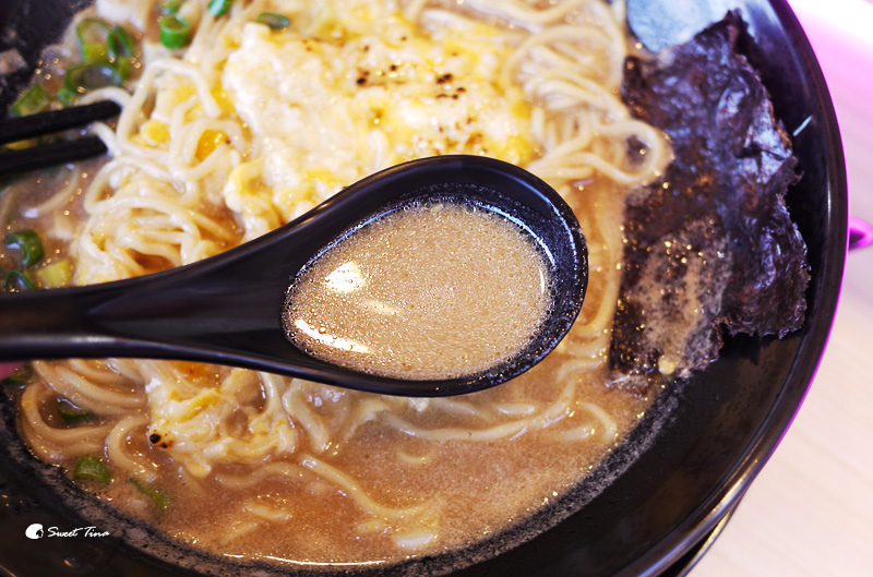 瞧瞧這湯頭就知為何叫「超濃拉麵」了吧,湯頭選用了大骨與鮮奶一同熬煮的牛奶湯,奶香味十足,連瑋兒也超愛的,我的湯幾乎被他喝光啊!
