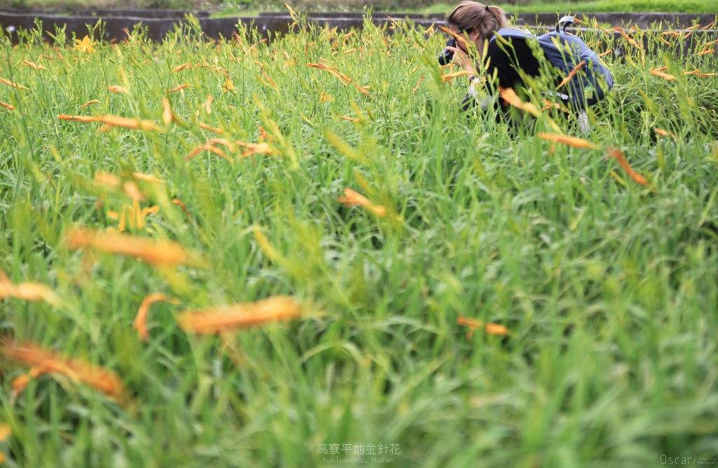 大面積的金針花田在眼底盡情開展 讓前來觀賞的人都佇足了一段時間