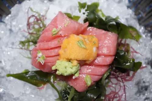 因為坐在吧台,抬眼就看得到師傅在台前執刀切生魚片的模樣