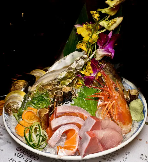 澳洲黃金蟹、九孔鮑魚、鯛魚、阿根廷天使紅蝦、屏東直送活白蝦、東石鮮蚵、大文蛤