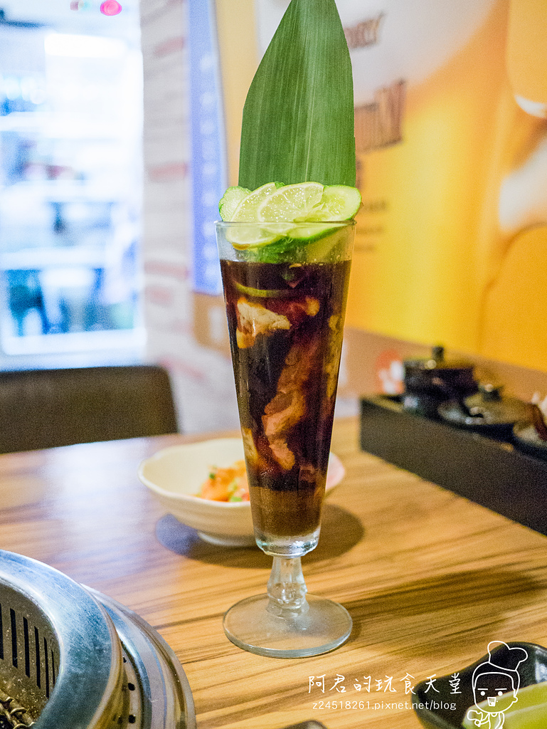 ▼點了一瓶玉極閣BAR(iichiko bar),使用日本產的梅子,並浸泡於玉極閣燒酎內半年,讓梅子自然的把果酸散發於酒中,變成清香甘醇的梅子酒,喝起來香甜又順口,挺不錯。