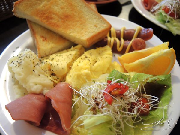 沙拉還不錯醬汁是清爽型的,炒蛋和熱狗香腸及火腿就普通了