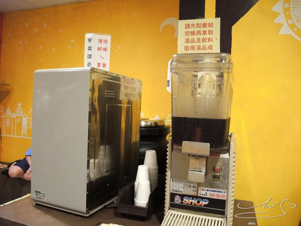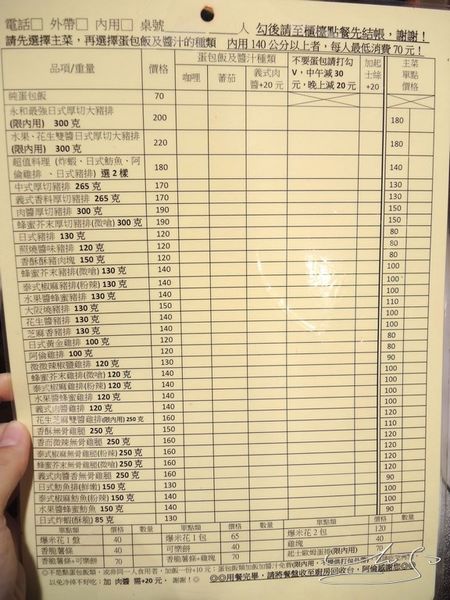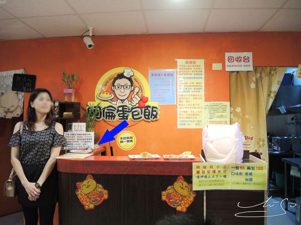 之後就到櫃台拿菜單點餐 (藍色箭頭處為菜單)