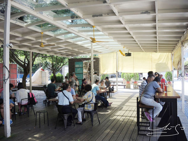 室外的話 先找到位置再去櫃台點餐 (意思是你要自己眼明手快看到有人要吃完了就去Standby)