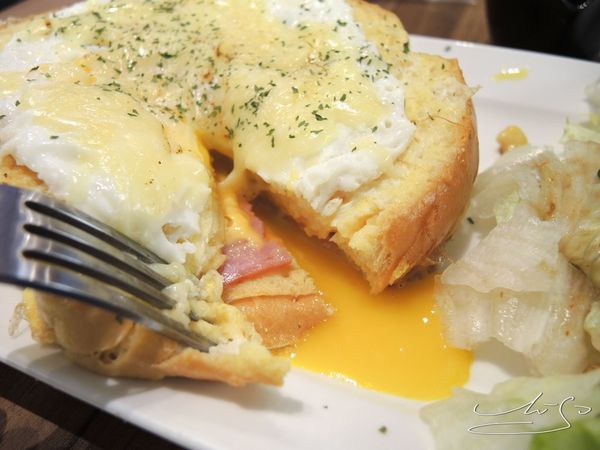 配上外層的起司和內層的火腿半熟蛋
