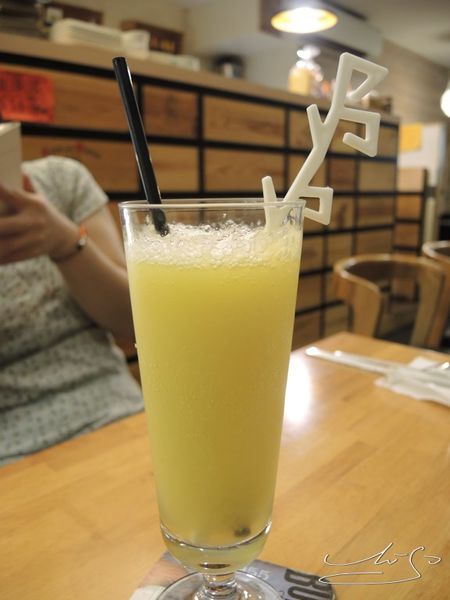 朋友點的飲料是水果汁 (上圖咬咬女孩旁的豆奶只是拍照用)