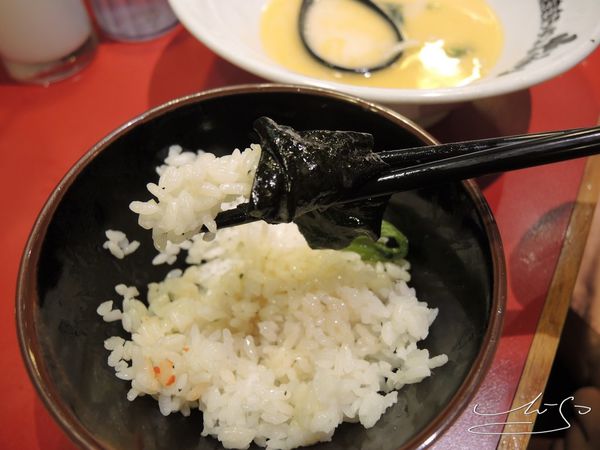 大和家很特別的就是拉麵湯頭結合白飯的吃法