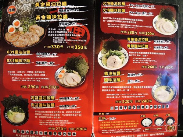 有六片海苔三片叉燒 和一顆黃金蛋 所以稱631! (還有一顆鵪鶉蛋)