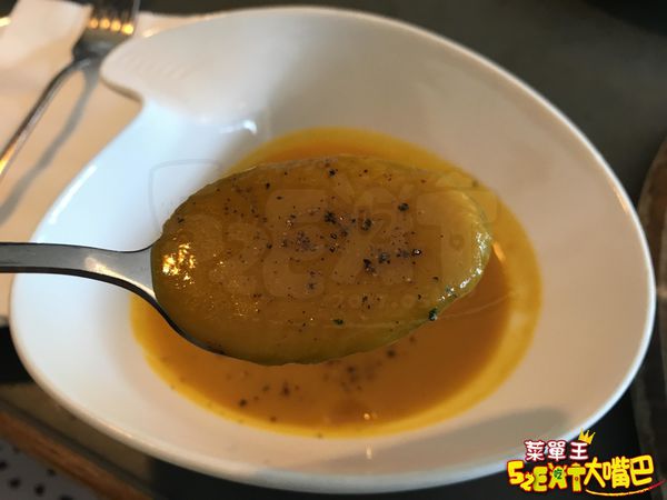 ▼套餐的濃湯,喝起來非常濃郁,可以喝到南瓜的纖維,自然的甜味滿溢在嘴裡,稠度不會太稠,喝起來順口,感覺不是刻意勾芡出來的稠度,口感滿分!
