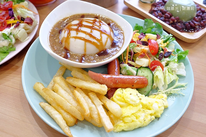 連碗粿也可以做成像 Brunch 的呈現,我簡直太佩服老闆的巧思,這也是最近吃到的早午餐中,最最最特別的一盤囉!升級成B套餐,內容物多了薯條、嫩蛋、沙拉及德式香腸,滿滿一盤,光看就覺得好滿足。