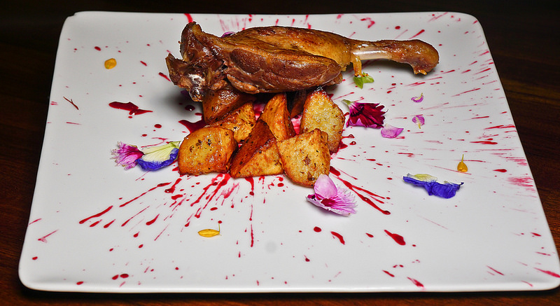 鴨腿的事前處理功夫,則是要先用醃料醃一天,之後在用鴨油醃一天,這樣鴨油的風味層次會越來越香,味道處理上是偏南法的香鹹,真的是一道很吃手藝的美好料理