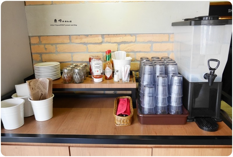 各樓層皆有擺設自取茶水、調味料等的櫃子