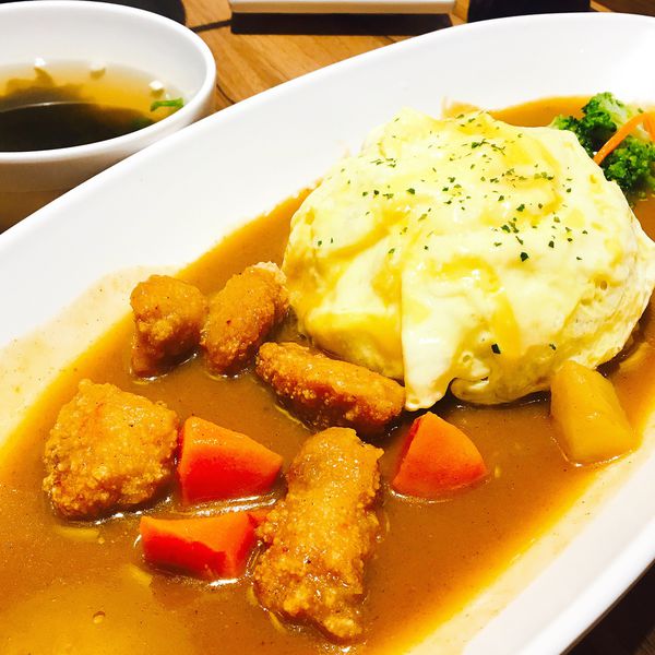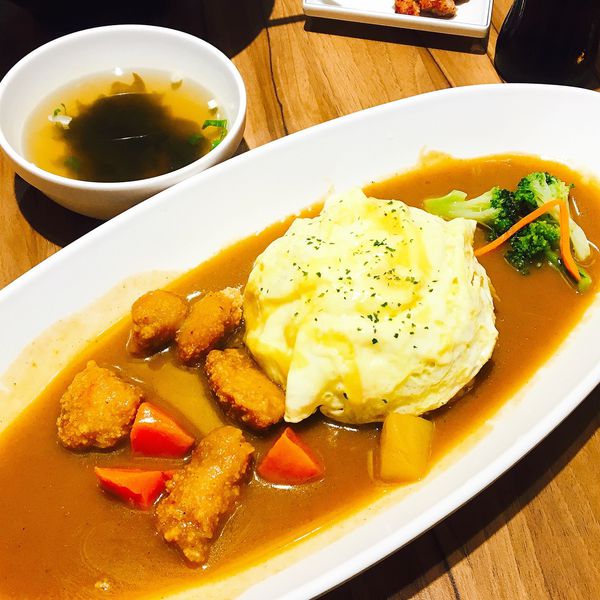 雞塊咖喱蛋包飯盤子很大,分量其實偏小,單點的話可能有點吃不飽。