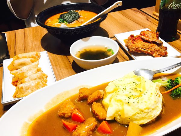 我們點了炸裂排骨拉麵、雞塊咖喱蛋包飯+B套餐脆皮餃子,看起來就叫人很有食慾~