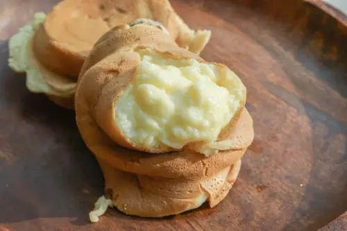 雞蛋仔本身非常有Q彈好吃且外皮真的很酥脆,配上奶茶風味冰淇淋跟珍珠這三種組合我是喜歡的,但是卡士達跟鮮奶油實在有點膩口,我很喜歡吃鮮奶油,但這鬆餅的鮮奶油我不愛,太油膩了,而且吃到最後所有食物會變成一坨溼答答的口感,我建議兩人分著吃會比較平衡。
