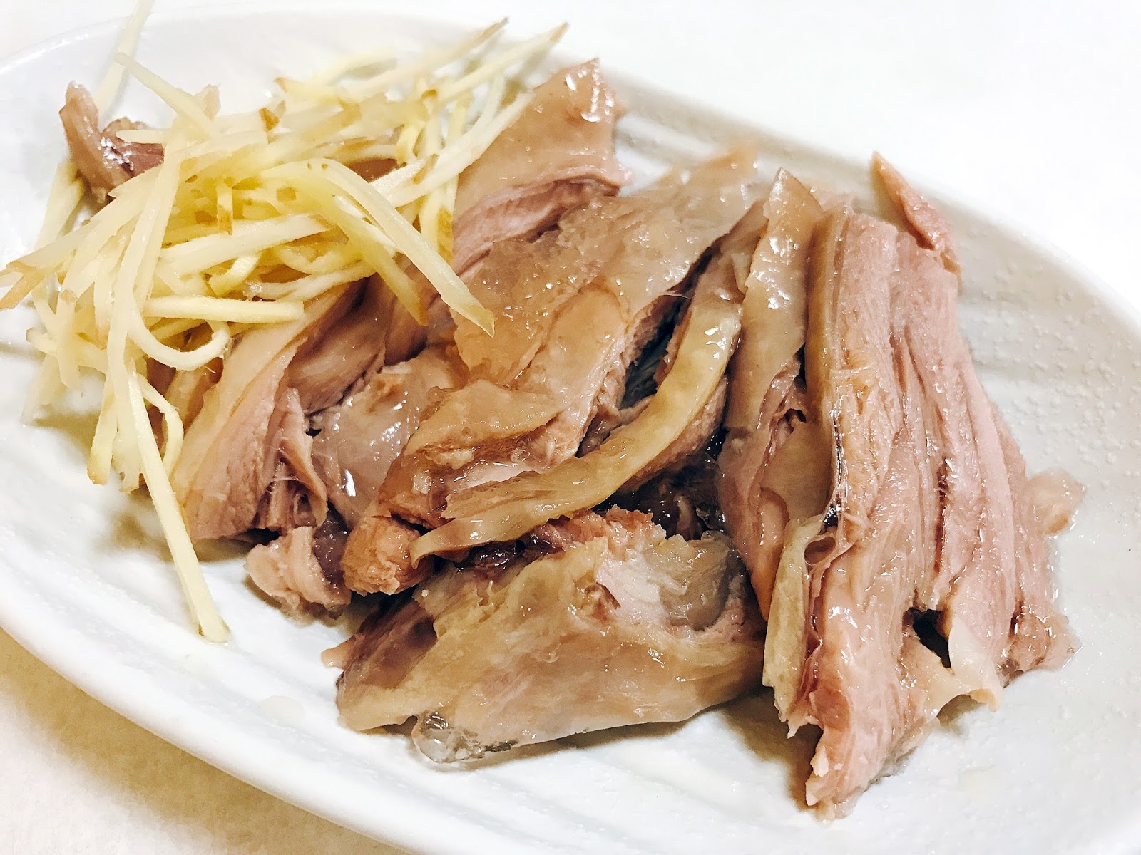 小份的客家油雞,用雞腿肉煮得軟透,去骨切盤,份量兩個人分著吃剛好,搭著薑絲吃起來很清爽。