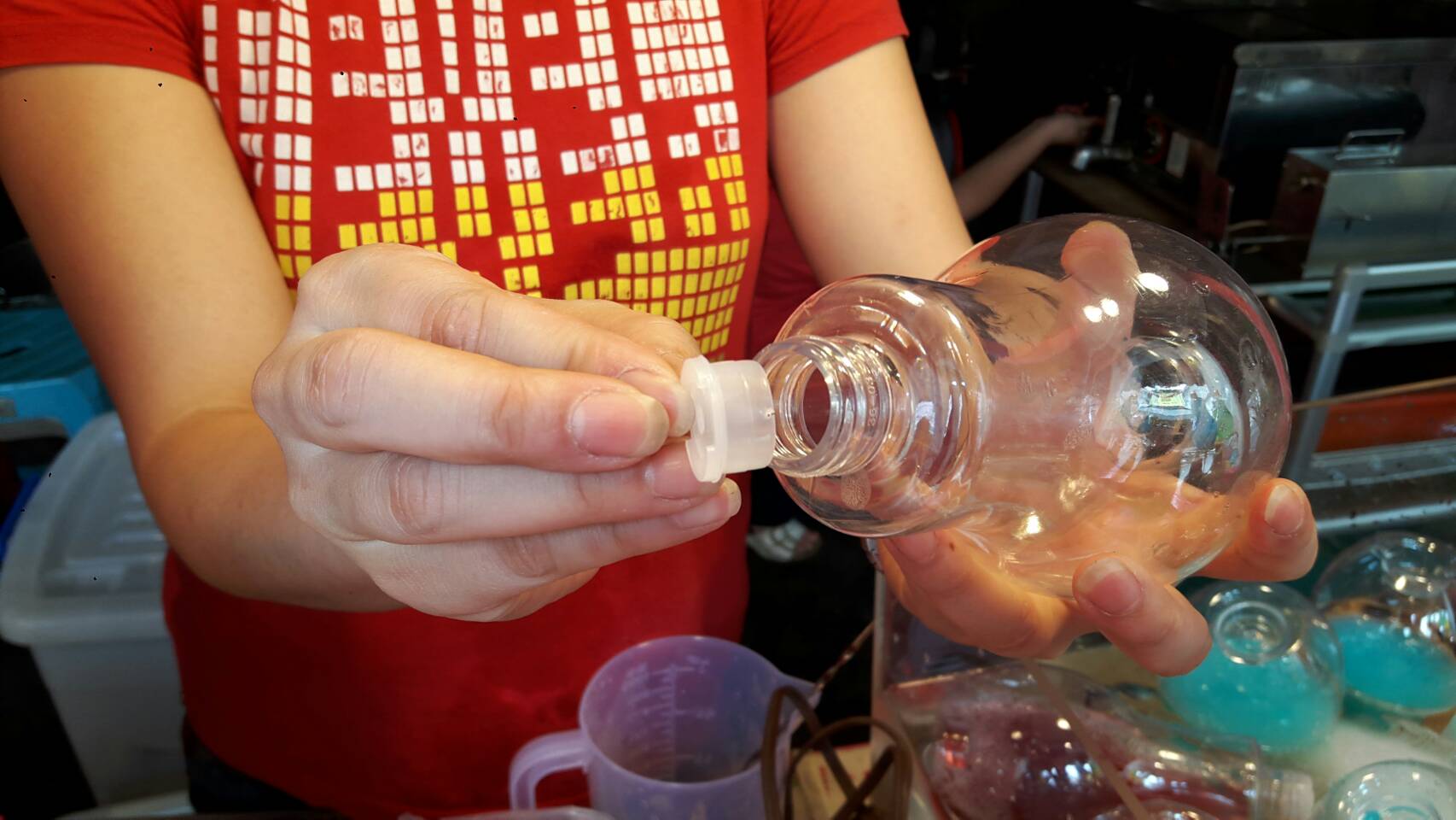 再來就是這個用來拿裝飲料的瓶子會發光捏,還可以調整七彩快閃、慢閃和恆亮,老闆阿!怎麼把這裡當作夜店在賣飲料阿XD!