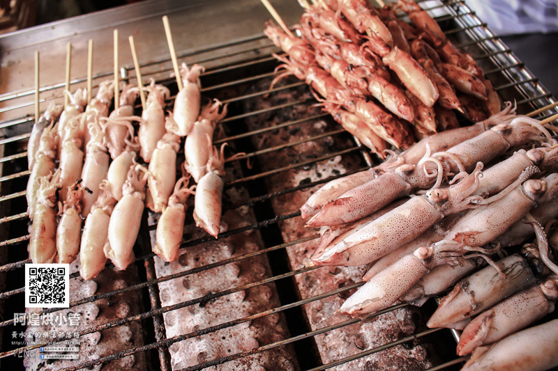 阿煌烘小管的小管是用烘烤的,口感屬於較為濕潤且軟,沒有想像中的死鹹也沒有會把牙齒弄黑的恐怖景象,是一串很好吃的在地小吃。