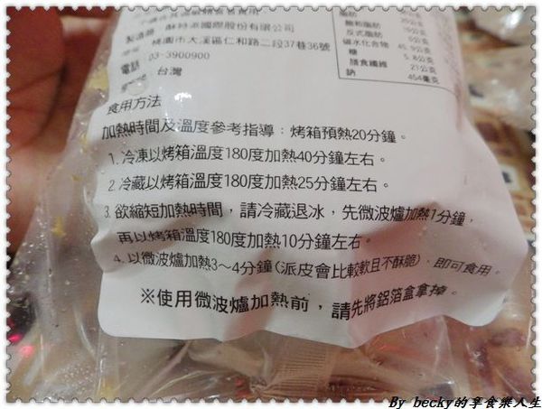 因為烤箱太小,所以先烤二個,每個派底下有鋁箔盒,是可以直接烘烤的,若是要使用微波爐,就要先拿掉喔!