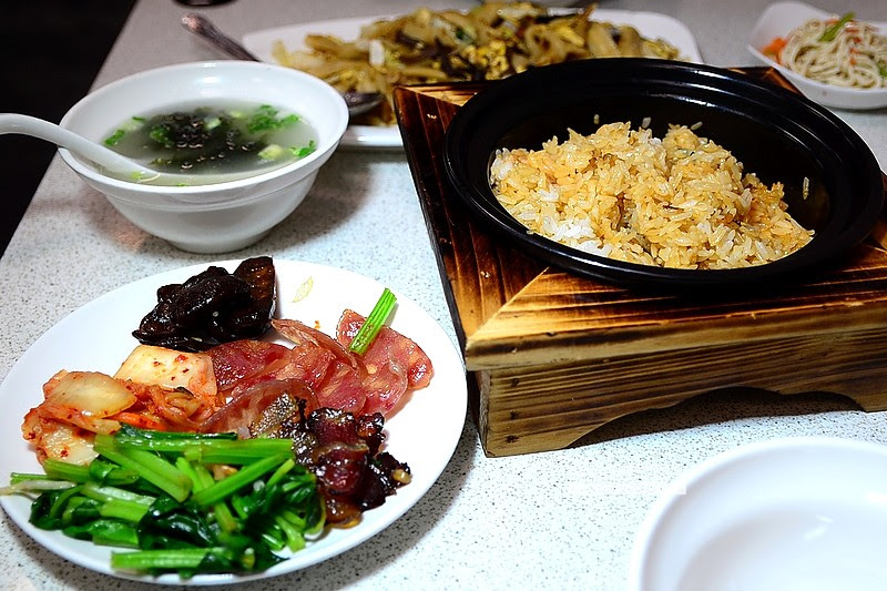 米飯有鍋巴但是沒有焦掉,淋上適量醬汁的白飯,吸收了香腸、肝腸、臘肉的香氣和甜味 ,攪拌均勻後食用,每口都有引發食慾的迷人香氣,再配上臘腸或泡菜就更美味了