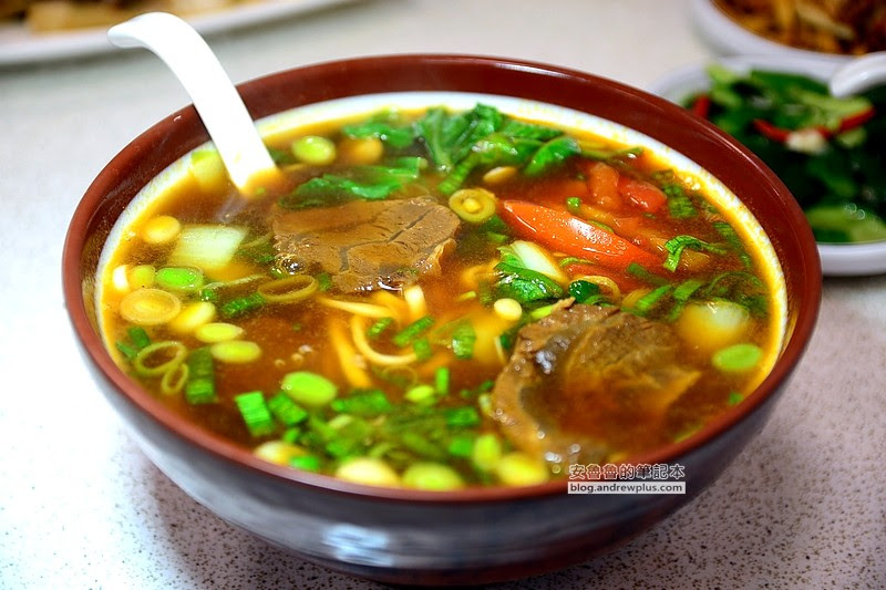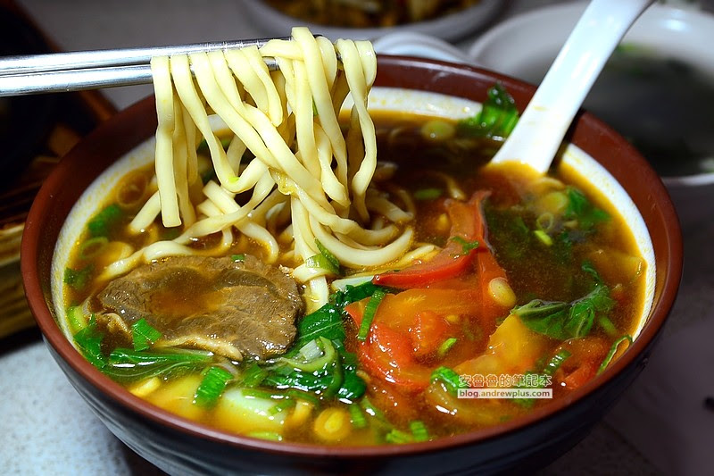 明明點的是小碗,上桌的碗卻快比臉大,湯頭喝起來鹹香中透著微微番茄的酸甜,整碗麵裡頭除了燉到軟硬適中的牛肉外,還放了切片超大片番茄。為了來常常普通麵的味道,所以就請陽光姐忍痛放棄最她愛心的刀削麵