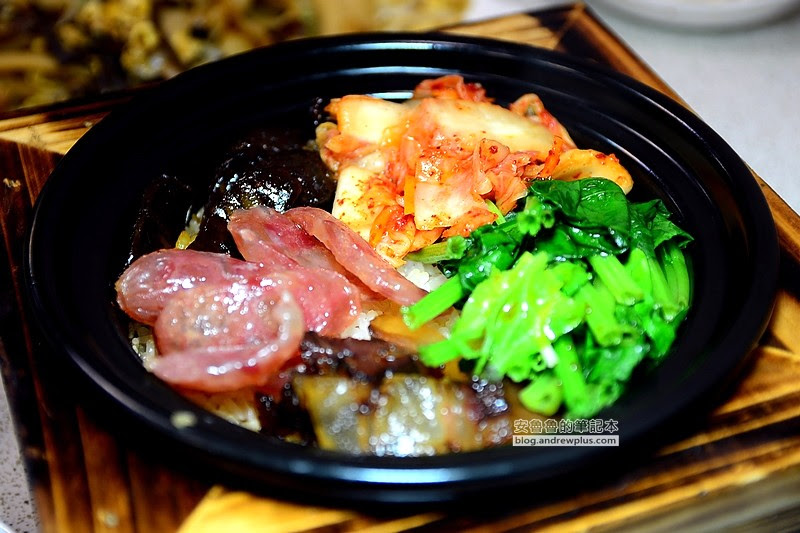 記得上次在香港吃了網路上有名的煲仔飯,覺得不過爾爾,就是淋上醬油在放上幾片肉的煲仔飯居然賣那麼貴!!留下了不太好的回憶,不過今天的煲仔飯一掃之前不佳的印象!!老闆打開了我們桌上的煲仔飯~哇! 看起來還挺豐盛的嘛!