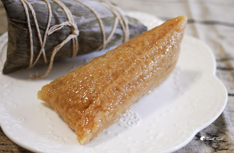 個頭和潮洲粽一樣大,混合黑糯米後就算加熱也不會覺得過軟,黑糯米讓口感提升了,這款甜粽好好吃唷,推推~
