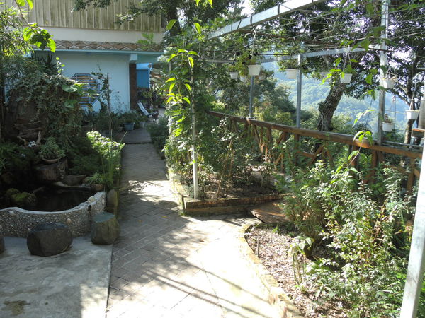 進門後有個小小的菜園也有種花及小水池