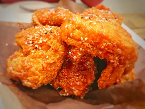 韓式炸雞塗抹著是正宗從韓國進口的韓式醬料,塗抹在炸雞上也很費工,但口感極好