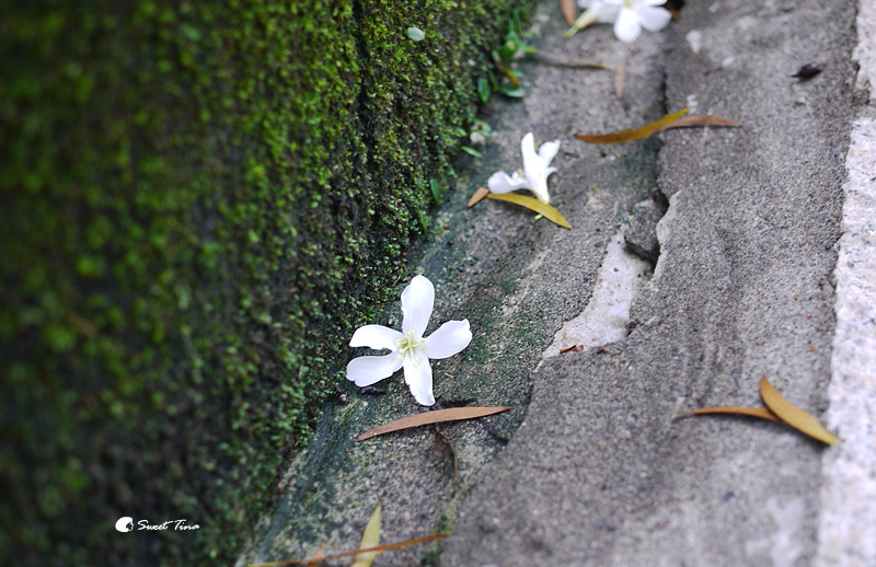 飽餐一頓後,我們就轉移到戶外區泡茶享受山林之美囉,附近剛好也有幾株油銅花,散落下來的花朵還挺美的。