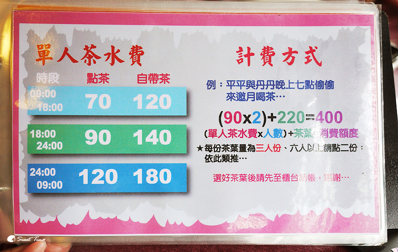 來這兒泡茶的話,不同時段收取的費用也不一樣哦,大家要留意一下。