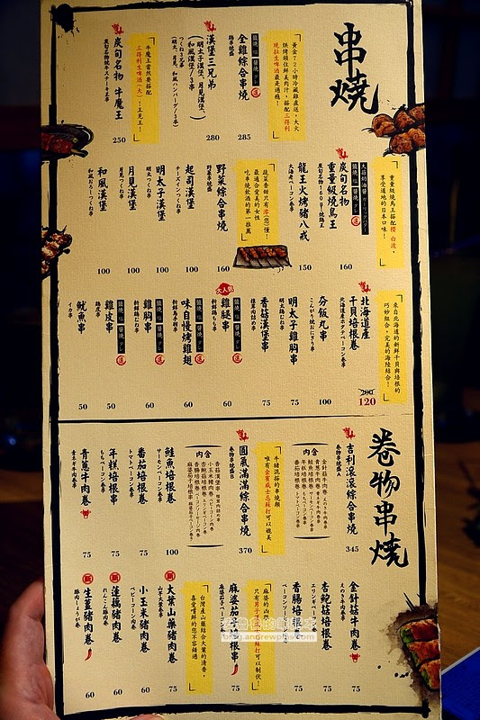 串燒、鮮魚、肉料理、飯麵、酒類飲料