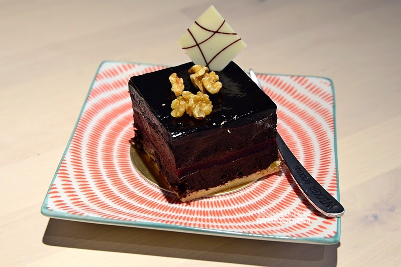 接近螞蟻人的甜度,上層慕絲底層蛋糕,兩種巧克力及覆盆子的組合,入口即化的口感。