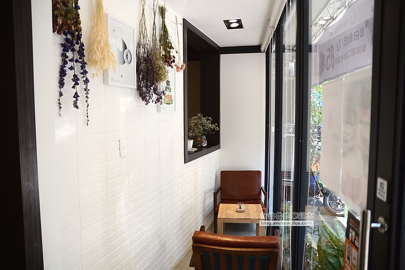 ▼推開玻璃門走進來,有間朝東北的小小的日照室,採光相當好~老闆在這裡放了兩人的桌椅,米白色的磁磚和乾燥花的點綴,是不是很有日式流行雜誌拍照的氣氛
