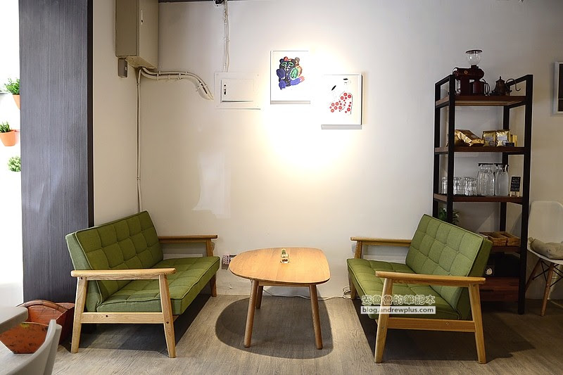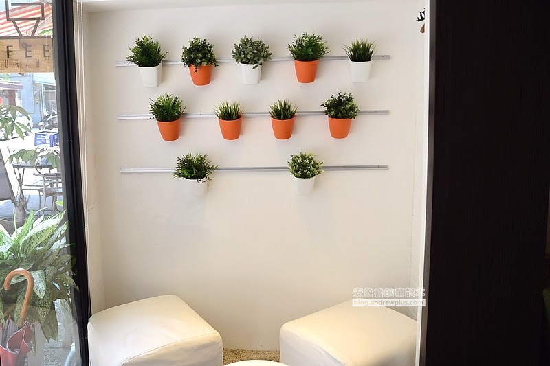 ▼另外一次的牆上則是掛上幾盆盆栽,放上幾個方形的小沙發椅,這樣的景致怎能不端杯咖啡來假裝一下文青