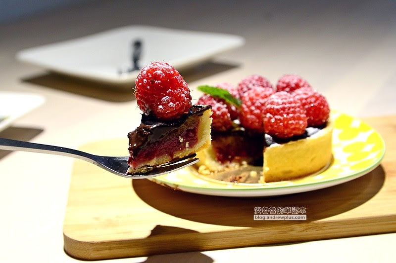 ▼趕快切一塊來吃吃~整顆的覆盆子下面一層苦甜巧克力,在下面還有一層覆盆子的內餡,搭配上不油膩鬆軟入口即散開的塔皮,不會太甜,搭咖啡很適合