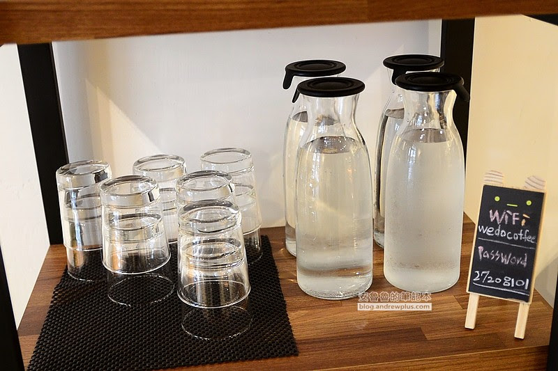 ▼店內也提供免費的WIFI讓客人使用,密碼就放在可自行取用的飲用水和玻璃杯旁邊。店家就不收服務費,也不限用餐時間!