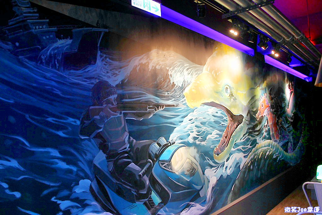 一進店內,一樓的座位不算少,而牆面上都有許多與水、魚有關的塗鴉牆,