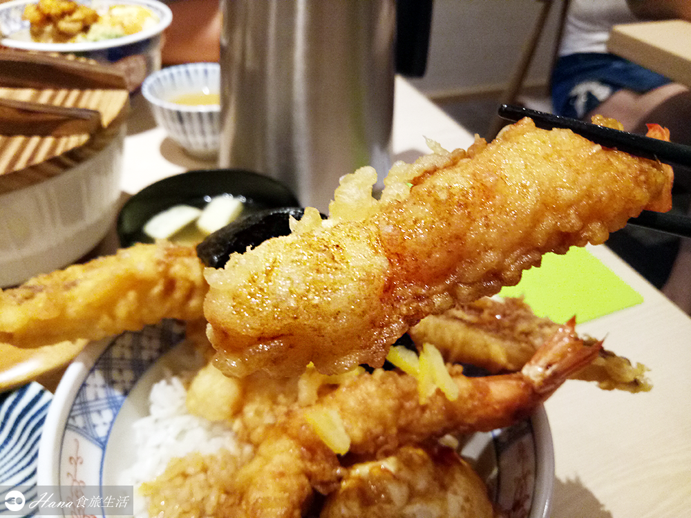 且保有蝦子的甘甜滋味,搭配鹹鹹的天丼醬汁,