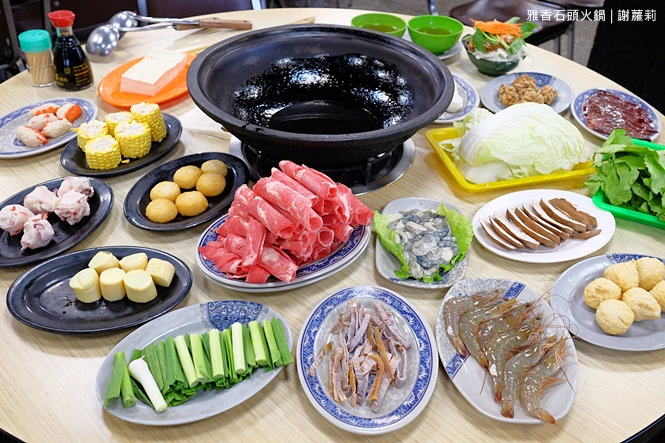 菜盤一端上,當然要立馬趕緊把菜都東西都扔進去,高麗菜、萵苣,其它還有南瓜、金針菇、豆腐,裡面還有不少種類的各式丸子。