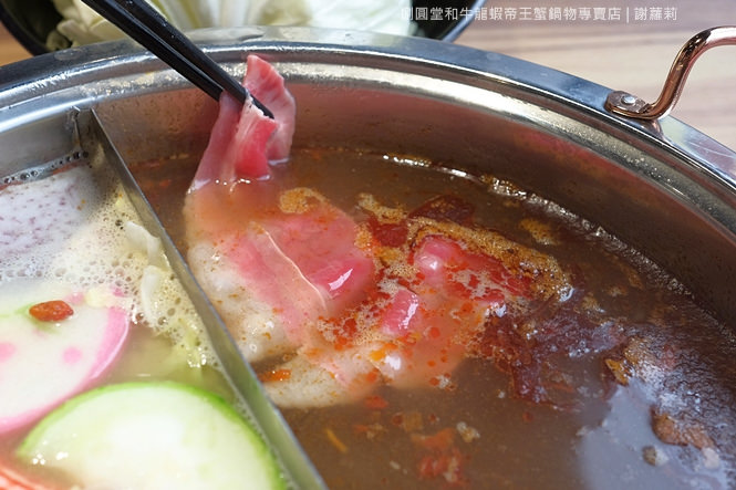 菜還沒上桌就忍不住試了一下它的味道,紅湯微辣帶點麻勁兒、香氣很是鮮明,而白湯滋味溫潤,湯頭顏色看似渾涿,不過喝起來倒是比想像中清爽。